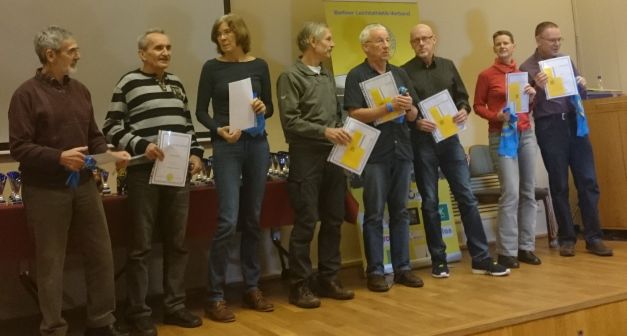 Auf dem Foto von der Siegerehrung für das Jahr 2018 von links nach rechts mit der jeweiligen Anzahl der Teilnahmen (2023 bereits eingerechnet):