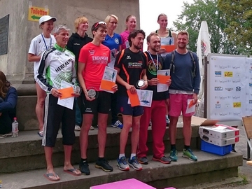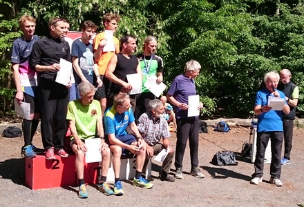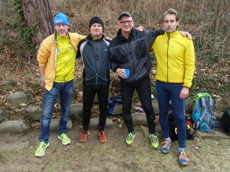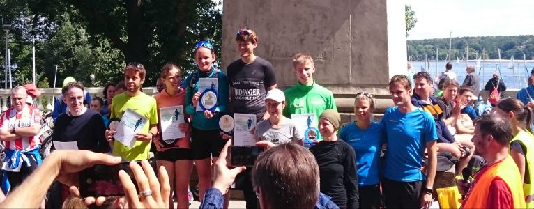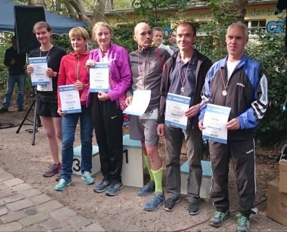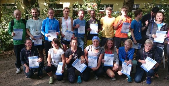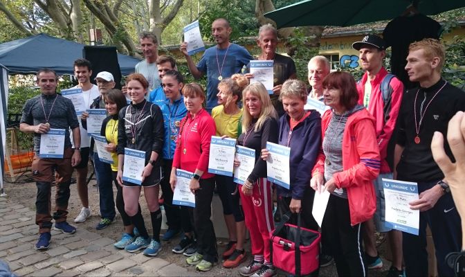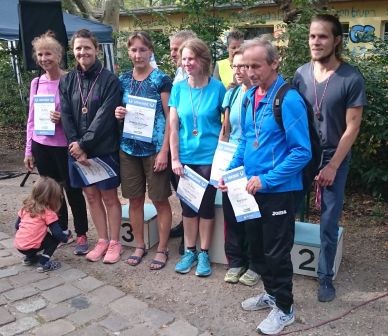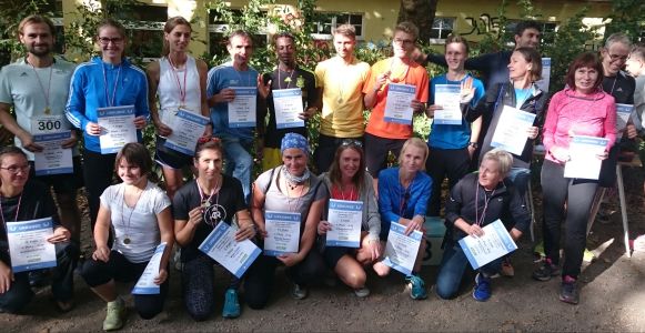 Lauf 16 - Friedrich-Ludwig-Jahn-Lauf in der Hasenheide: Die letzten Cup - Punkte 2014 wurden bei perfektem Spätsommerwetter vergeben. Sonne und Gesichter aller Aktiven strahlten nach dem kräftezehrenden Lauf über zahlreiche Berge um die Wette. Grund genug schon mal zum Feiern, wie ihr auf dem von Bertold Rämisch bereitgestellten Foto erkennen könnt.