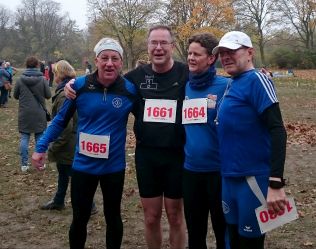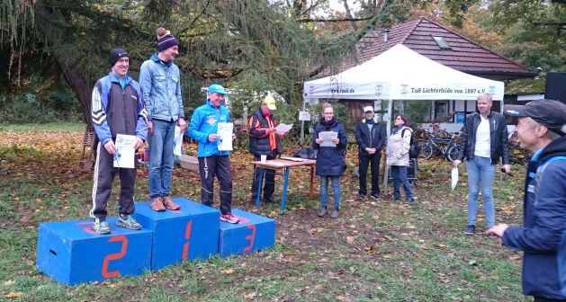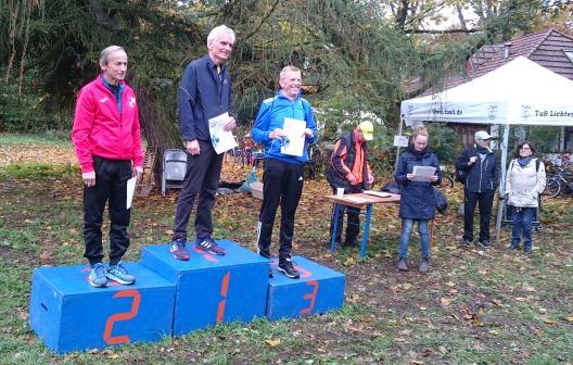 Lauf 15 - Crosslauf in der Hasenheide: Ein gelungener Saisonabschluss. Der Regen hörte pünktlich auf und so stand einem richtigen Tempolauf nichts mehr im Wege. Siegerehrungen fanden für alle Altersklassen statt und auch alle anderen Läufer ab Platz 4 konnten sich vor Ort Urkunden ausdrucken lassen. Für mich persönlich war es eine Saison mit stabiler Leistung - immer unter den 3 besten Läufern in einer sehr starken M55 (natürlich vom Schluss des Teilnehmerfeldes aus betrachtet) nach dem Motto: "Wollt ihr Harri vorne sehn, müsst ihr die Ergebnisliste drehn". Aber einer muss ja schließlich das Feld von hinten kontrollieren. Sehe gerade, ich bin heute doch mal über mich hinausgewachsen und geradeso viertletzter geworden. Dabei sein ist alles und ich freue mich sehr, mit euch viele schöne gemeinsame Laufstunden verbringen zu können - also dann bis zur nächsten Saison!