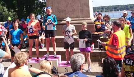 Siegerehrungen in allen Altersklassen Hier verteilt Claudia noch die restlichen Urkunden der BT-Meile, der Imbiss im Hintergrund bot Speisen und Getränke.