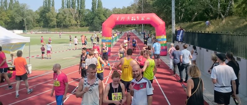 Lauf 8 - Hohenschönhauser Gartenlauf: Einfach wieder hervorragend, was die Sportfreunde von Ron-Hill Berlin alles auf die Beine gestellt haben. Ein umfangreiches Kulturprogramm auf der Bühne, Cheerleader an der Strecke, eine große Tombola, Urkunden für jeden Läufer im Ziel nebst Schlüsselanhänger mit Zertifikat für die erfolgreiche Teilnahme und eine Portion Kartoffelsuppe aus der Gulaschkanone - mehr geht eigentlich gar nicht. Parkplatzsuche - auch kein Problem, die Wiese hinter dem Schulgebäude ist groß genug und man wurde wie jedes Jahr freundlich eingewiesen. Alles sehr familiär und entspannt. Nur Duschen war diesmal nicht - die Schule hatte die Schlüssel vertauscht - wäre ja sonst schon zu perfekt gewesen.