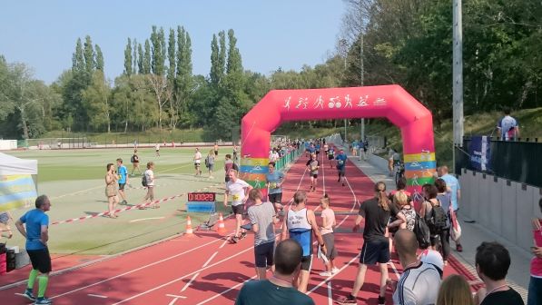 Lauf 12 - Kreuzberger Viertelmarathon: Strahlender Sonnenschein, aber kühler Wind und viele schattige Abschnitte auf der Strecke - also ideale Bedingungen, um mal wieder richtig aufs Tempo zu drücken. So wurde nach dem Startschuss auf der Aschenbahn traditionsgemäß richtig viel Staub aufgewirbelt. Auf den für den Lauf gesperrten Straßen angekommen, konnte man aber wieder richtig durchatmen. Der Orientierung dienten nicht zu übersehende Kilometerangaben, welche allerdings in etwas durcheinandergeratener Reihenfolge aufgestellt waren. Vor einer Schule bei Kilometer 3 wurde auch die Geschwindigkeit geprüft - alle Läufer im "grünen" Bereich unter den hier maximal erlaubten 30km/h. Geht ja mit mir direkt wieder aufwärts, konnte immerhin die komplette W55 und W60 hinter mir lassen, sonst war es ja meistens umgedreht. Sehr gute Verpflegung im Ziel, Fassbrause, Obst und eine speziell für den Kreuzberger Viertelmarathon hergestellte Trinkflasche zum Andenken.