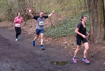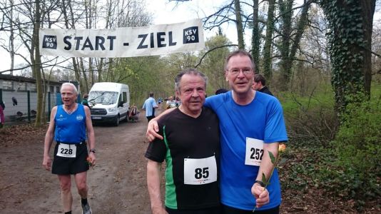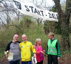 Lauf 4 - Lauf in den Frühling: War ja schon fast ein Lauf in den Sommer bei 23 Grad. Super organisiert, wie immer. Fünf Runden, d.h. 5 mal sich über den Berg kämpfen. Am besten gelang das Niels Bubel, der mich zwei mal überrundete und einen neuen Streckenrekord aufstellte. Wer seine Startnummer nach dem Lauf abgab, erhielt eine Teilnehmerurkunde und eine Rose. Die Ergebnislisten hingen auch sofort aus und Siegerehrungen in allen Altersklassen erfolgten ohne langes Warten. Meine Frau war als Zuschauerin dabei und hat einige Fotos geschossen: