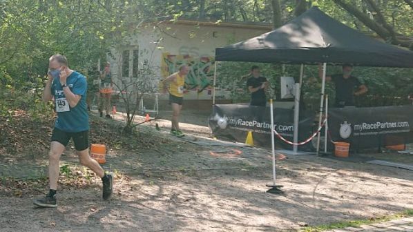 Erst nach dem Start durfte der Mund-Nasen-Schutz abgenommen werden und sollte dann nach dem Zieleinlauf wieder aufgesetzt werden (meist sicher etwas durchgeschwitzt).