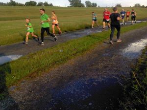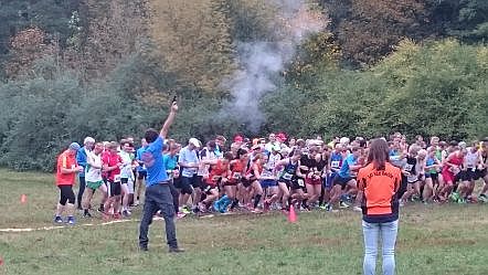 So war es nicht schwierig, die vorgeschriebenen Abstände einzuhalten, wie auf dem Vorstart-Foto des 1,8 km Jugendlaufes zu erkennen. Dank Nettozeit-Messung blieb jegliches Gerangel aus, trotzdem waren es Läufe mit Wettkampf-Feeling. Der Spannungsbogen hielt bis zum Schluss, dazu trug auch ein ortsansässiger Wildschweintrupp bei, der auf der 2.Runde vom 10-km-Lauf gesichtet wurde.