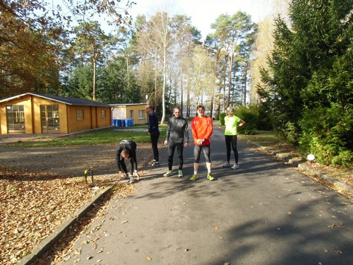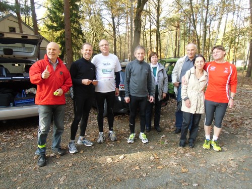 Das Org-team am Treffpunkt in Störitz - gleich begeben wir uns auf die Laufrunde.