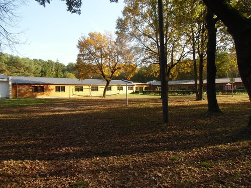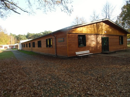 Das Gebäude von außen. Es befindet sich direkt am Start-/Zielbereich (Startpunkt s. Foto rechts). Der Speisesaal ist auch in diesem Gebäude.